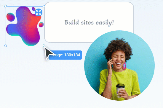 Design your site visually like in any graphic editor. Drag-n-drop elements and place them freely.