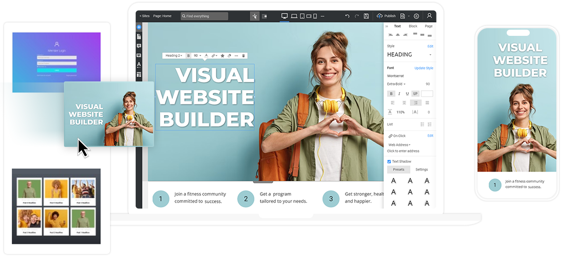 Contact forms, photo galleries, video backgrounds, sliders, and more. Make your sites fabulous and go online instantly. No need to be a designer.